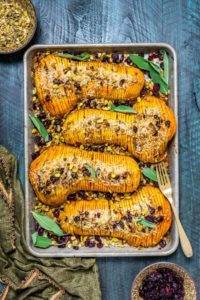 3 Honey-Glazed Hasselback Butternut Squash with Parmesan Breadcrumbs from Host the Toast